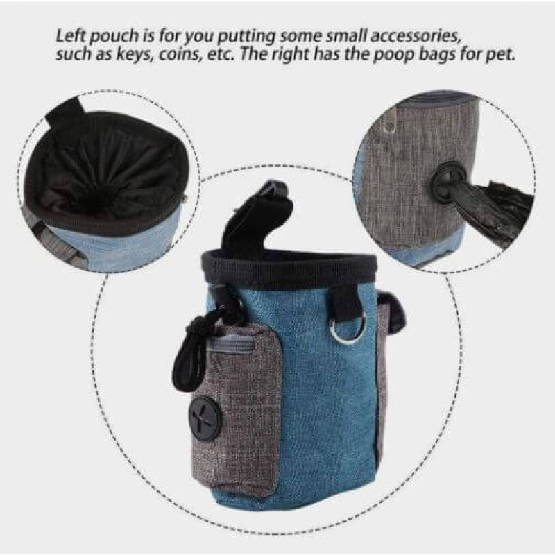 NALCY Dog Training Bag, Dog Treat Bag, Portable Puppy Treat Bag with Poop Bag Dispenser Adjustable Portable Outdoor Pouch. The dog bag is waterproof.
