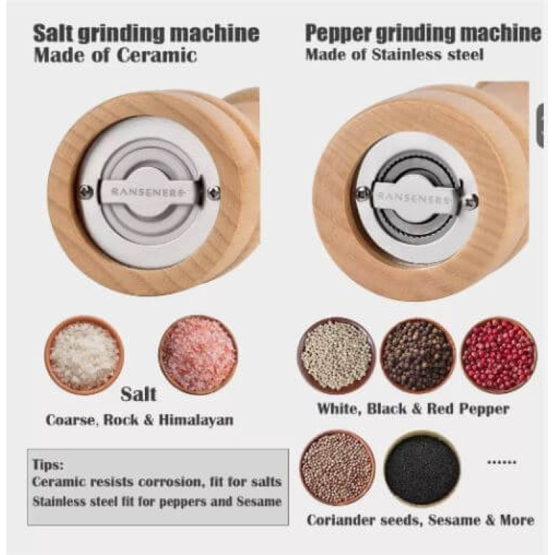 Perfect for salt, pepper, and other dry spices, the RANSENERS mills are not only functional but also a stylish addition to your table setting. Ideal for everyday use or as a thoughtful gift for home cooks, newlyweds, or anyone who appreciates high-quality kitchenware.