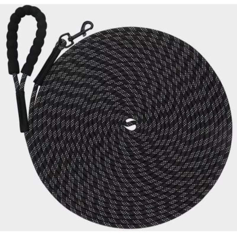 Taglory Long Leash for Dog Training, 30 FT Reflective Nylon Rope Lead, Check Cord with Comfortable Padded Handle for Large Medium Small Dogs Walking, Camping, Black with CLICKER&BAG