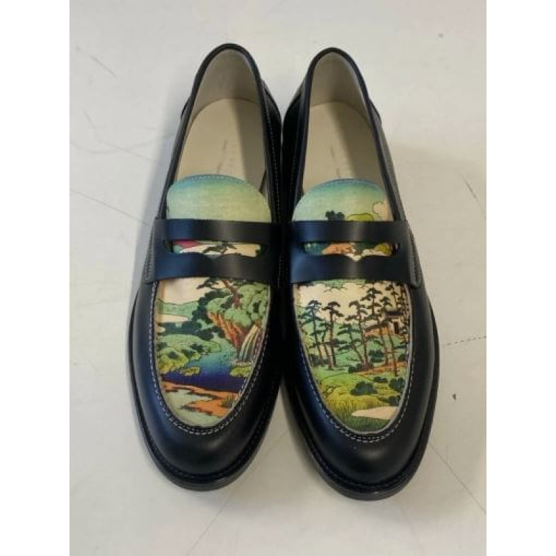 Wilde Penny Loafers – Katsushika Hokusai “Sacred Spring” Design, Italian Leather Slip-On Shoes, Size 13UK